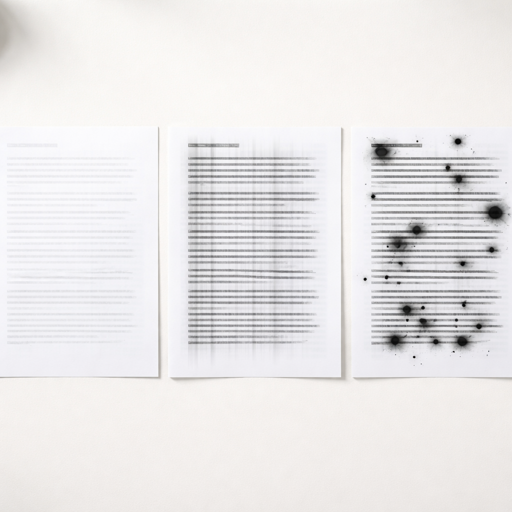 Các vệt sọc đen hoặc trắng xuất hiện dọc theo trang in là tín hiệu máy cần được vệ sinh hoặc kiểm tra hộp mực. Nền giấy bị bẩn, loang lổ mực cũng cho thấy có vấn đề cần khắc phục ngay.