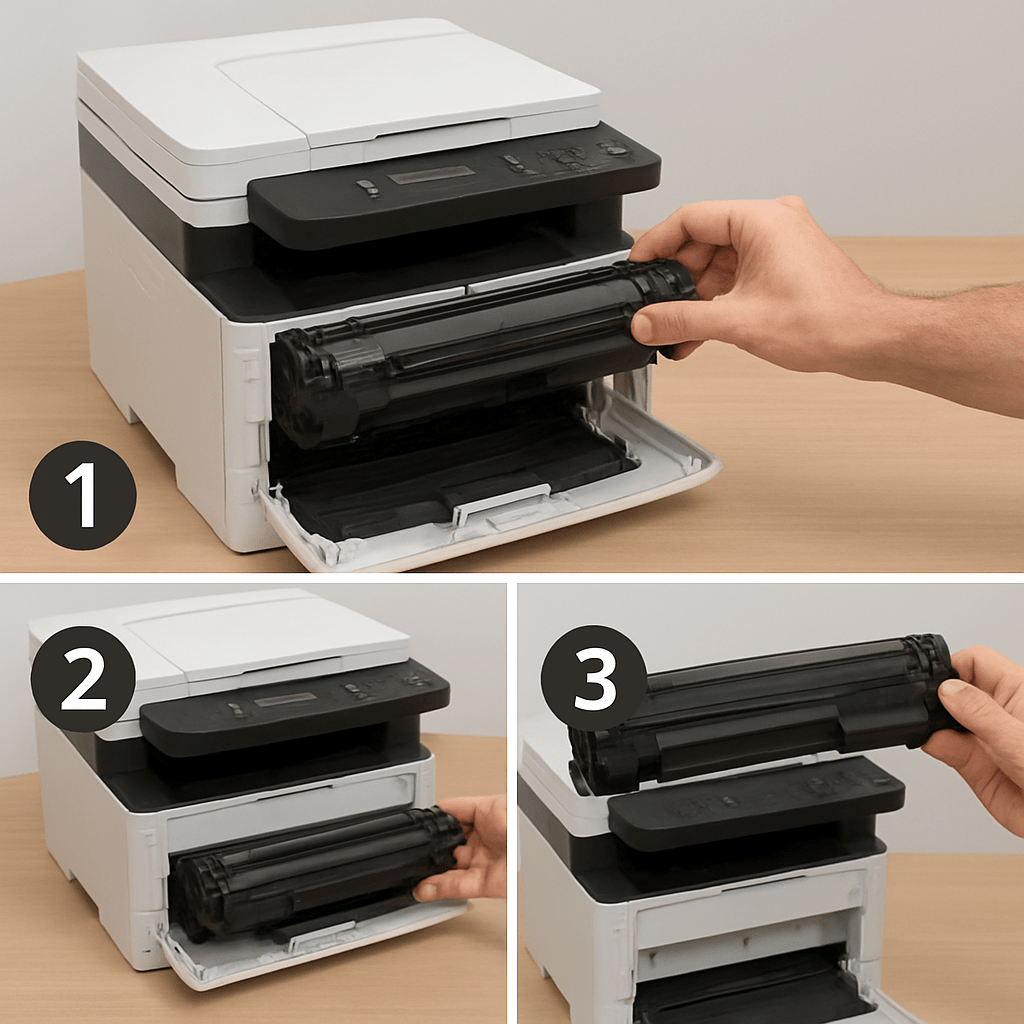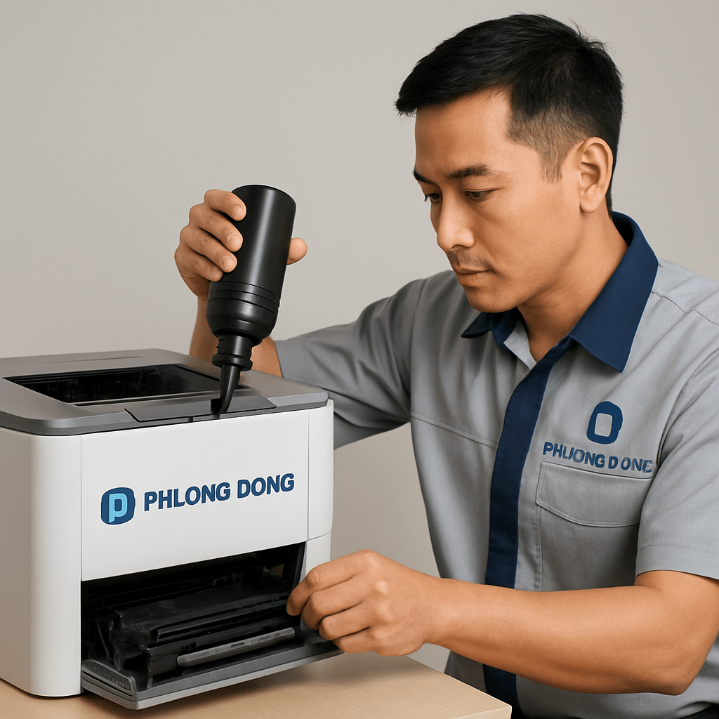 Quy trình đổ mực cho máy laser đòi hỏi kỹ thuật chuyên môn cao, đặc biệt với việc xử lý cartridge toner. Kỹ thuật viên được đào tạo bài bản để đảm bảo máy hoạt động ổn định sau khi đổ mực.