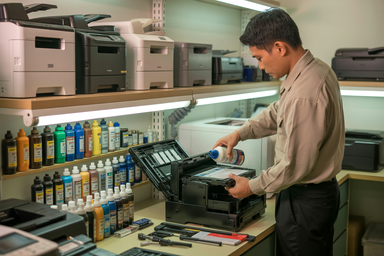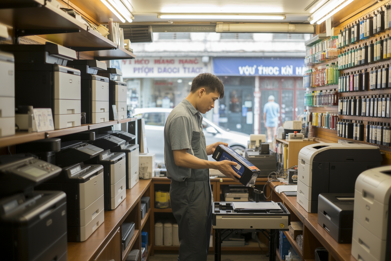Bán mực in tại Phùng Khoang không chỉ đơn thuần là đổ mực mà còn bao gồm dịch vụ vệ sinh tổng thể. Việc bảo dưỡng định kỳ giúp máy in hoạt động ổn định và kéo dài tuổi thọ.