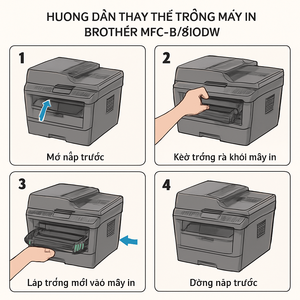 Hướng dẫn tháo lắp và thay thế trống máy in Brother MFC-L2701DW an toàn